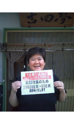 2011年11月12日 のんちゃんからのお知らせです コメント数:42 コメント カテゴリ:日記 by kudomeg だそうですよ〜(^O^) のんちゃんってメールが 苦手で普段から送信も 受信も殆どないそうです なので私がメールをすると あなた何時代の人? 私達の関係は何? と、思う程、新鮮というか 斬新というかヘンテコな メールが届きます。 しかも何故だかメールに なると突然、敬語 そんなのんちゃんから 今日、届いたメール 至って普通の文章の後に いきなり(笑)の文字が ついてました なんで今、このタイミングで (笑)を使う ごめん。笑えない・・ と、思ったら次のメールで いきなり何かが弾けたように 「オッケー了解」と返事が きました。 これ、のんちゃんなりの ギャグです 「オッケー」とは・・・ コンバットの試合中の口癖。 のんちゃんのモノマネを する人はみんな 「オッケー」から入ります のんちゃん、ここだよここ ここで(笑)を使うのよ オッケー(笑) こんなのんちゃんのいる 吉四夢のリニューアルは 12月1日(木) とっても美味しいお肉と のんちゃんスマイルが お待ちしていますよ〜 是非是非、足を運んで 下さいね〜 吉四夢 千葉県浦安市高州3-1-5 047-305-0429