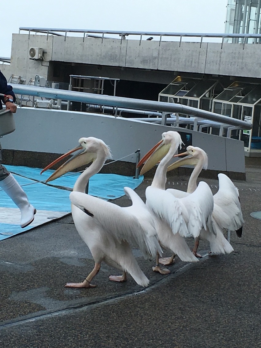 2016年04月05日 オープニング by kudomeg アザラシ&トドのショーの オープニングで登場したペリカン達。 羽をバタバタさせながら 派手に登場したと思ったら そのまま出口方向へいそいそと 帰って行きました。 かなりのツボです 私も超花火大会でペリカン達のように インパクトのあるオープニングを 飾れるように頑張らなくっちゃ