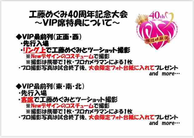 2025年11月28日 チケット情報 by kudomeg 📣チケット情報\2026年10月17日開催/工藤めぐみ40周年記念大会−邪道姫伝説−11/29(土) 10:00より各種プレイガイドにて一般販売開始❗️📢販売URLは11月28日公開VIP席特典は工藤めぐみとツーショット撮影📷✨⚠️VIP《正面》は残り僅かの為プレイガイドでの販売はございません。詳細は後日お知らせします。#チケット一般販売#工藤めぐみ40周年記念大会#邪道姫伝説 カテゴリなしの他の記事 < 前の記事次の記事 >